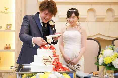 いちごがたっぷりのウエディングケーキはおふたりのこだわりです♡パティシエが忠実に再現しました!新郎新婦様のファーストバイトの前におふたりの親御様にお手本バイトをして頂き、とても盛り上がりフォトタイムにもなりました♪