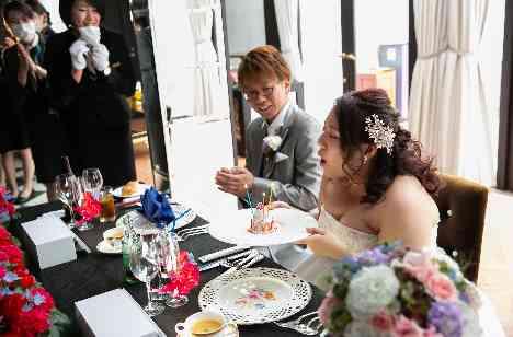 3月14日は新婦様のお誕生日です!新婦様の産まれた12時42分になるとサプライズでケーキが登場!会場にいる全員でバースデーソングを歌い、サプライズ大成功♡3月14日の大切な思い出がまたひとつ増えました。