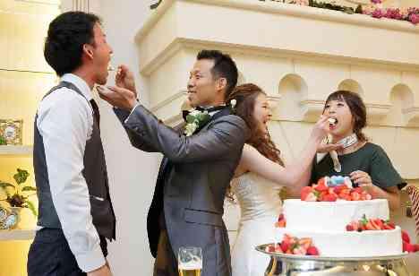 ケーキ入刀をされファーストバイトをした後は…!お二人から大切なご友人にサプライズでサンクスバイトをされました♡ご友人もまさか自分が呼ばれるとは思っておらずとてもビックリされていましたが、笑顔いっぱいで喜ばれてました(*^^*)