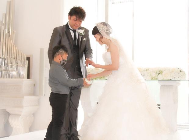 新郎様の甥っ子さん「そらくん」 新郎新婦様のことが大好きなそらくんは 緊張感のあるお式の中 堂々とおふたりの元へ指輪を送り届けてくれました お二人もゲストのご家族の皆様もほっこりされていました