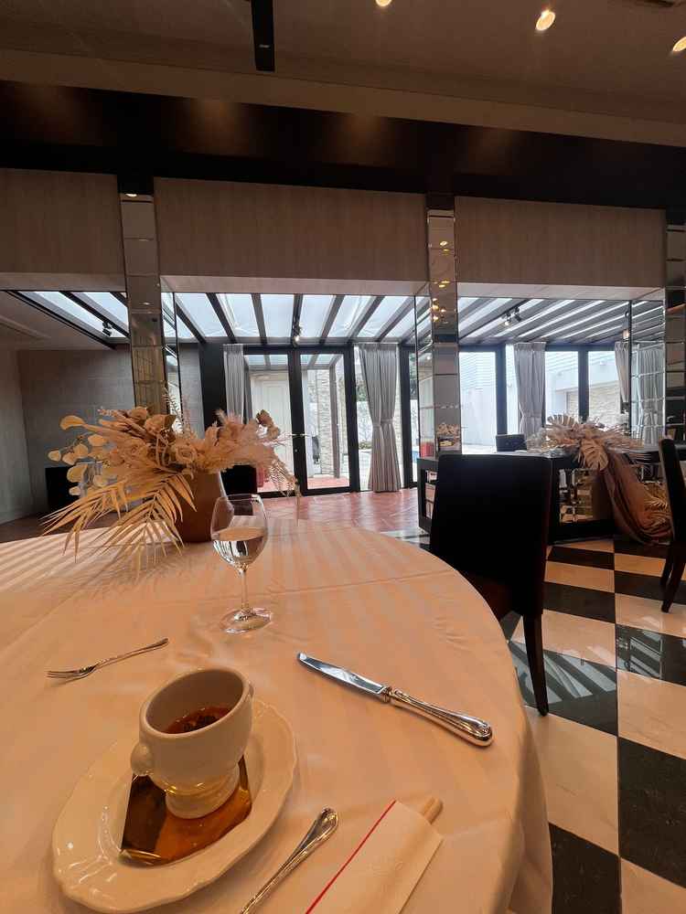 披露宴会場ではカラードレスをもっと映えるため、後からカーテンクロスを選択することができる。 また、会場が横長になっているので新郎新婦とゲストの距離が近い。