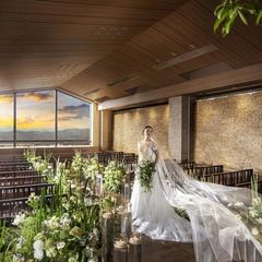 【京都の街並みを一望するチャペル】清き水が流れる正面の大きな窓からは、八坂の塔を望む絶景のロケーション。温かみのある木目調のバージンロードが花嫁姿をより美しく引き立てます。和装での挙式もおすすめ