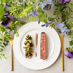 【当会場先輩カップル「料理口コミ」評価1位】特選黒毛和牛や厳選京野菜など、2万円相当のメニューをコース仕立てに。フェアでは先輩花嫁のフルオーダー料理の実例を無料試食で体験できます