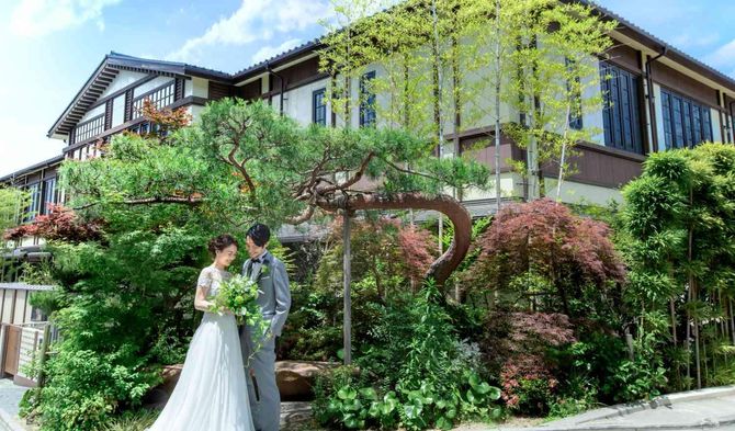 訪れるだけで非日常感を味わうことのできる京都・東山。そんな地に結婚式のために建てられた和邸宅「KIYOMIZU」 京都らしい伝統と風情につつまれながら美食とおふたりらしい演出でゲストをおもてなし。自由なコーディネートが映える3つのパーティ会場をご用意