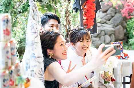 交際がスタートしてから初めての大きな旅行が沖縄だったおふたり。月日は流れ、運命のプロポーズももちろん想い出の沖縄。 後のハネムーンにも行くこととなる大好きな沖縄をフォトスペースでテラスに完全再現♪ 会場全体には沖縄をイメージさせる音楽を流し、ゲストにも旅行に来たような気持ちで楽しんでいただけました