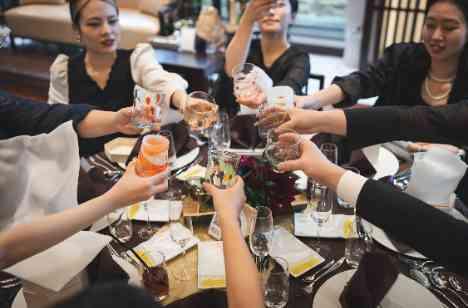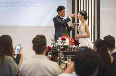 おふたりが入場し、新郎さまからのウェルカムスピーチはゲスト参加型でより一層会場は盛り上がりパーティースタート! ケーキ入刀や友人スピーチも言葉をスクリーンに映し出し、ゲスト全員が楽しんでいただけるように工夫しました。 各卓写真では、握手したりハグしたりと、終始温かく国の壁・言葉の壁を越えた時間になりました。