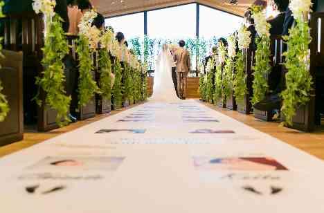 おふたりのことを誰よりも近くで見てきた新婦妹様から、当日サプライズでアイルランナーをご用意。妹様だからこそ知っているおふたりのストーリーをアイルランナーに書き記しました。歩みを進めるごとに感動が込み上げます
