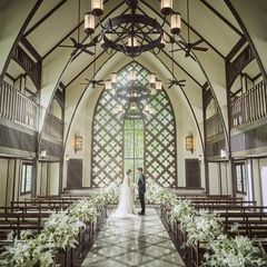 【豊かな緑と自然光あふれる独立型チャペル】全天候対応のチャペルで感動の入場体験!天から降るように音が響く天井高9m&バージンロード15mの開放的なチャペルを要チェック!純白のドレスとも相性抜群。