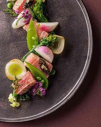 - 京野菜を中心に旬の味にこだわり、完成させている和テイストのニュー。年に4回のメニューチェンジがあり、京都の四季を感じられる婚礼コースをご提案しております。お箸でもお召し上がりいただきやすく、お子様からご年配のゲストまで幅広い年齢層の方にお喜びいただいております。
