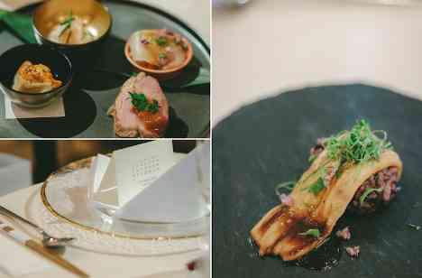 “自分たちもゲストも、みんな礼儀を気にするのではなく 肩の力を抜いてアットホームに過ごせる披露宴にしたい” “お箸で食べることができて京都らしさも感じてほしい” とおふたりが選ばれたお料理は、会場に併設されているキッチンから 熱々の状態でゲスト皆様のもとへ運ばれます。 メインテーブルでは次々とたくさんのゲストがおふたりを囲み 会話やお写真の時間を楽しまれました。