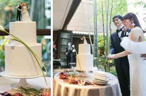 ウェルカムスペースではゲストみんなのイラストを書いた証明書をご用意し、それぞれにサインをご記入いただきました。 最後の仕上げにおふたりのサインを記入され、完成した結婚証明書は おふたりのゲストを想う気持ちとこのパーティに込めた想いが溢れるアイテムとなりました。 一面の窓からご覧いただけるお庭の竹林をバックに行ったケーキ入刀はとっても印象的で祝福のひとときを輝かせます。