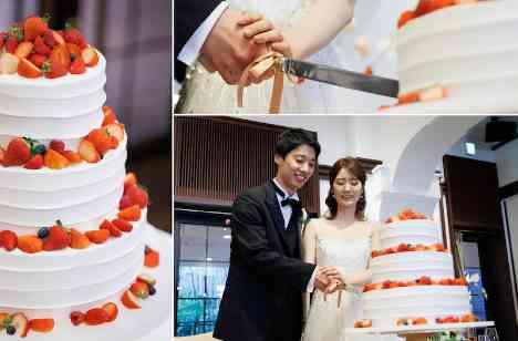 オープニングムービーが流れ、おふたりがご入場 “とにかく楽しんでほしい” そんな想いで準備を進めてこられたご披露宴のスタートです ご歓談が盛り上がる中、鮮やかないちごのウェディングケーキが登場 そして、おふたりを繋いでくれたキューピッドでもある大切なご友人へ感謝の気持ちを込めてサンクスバイトを “私たちふたりを出会わせてくれてありがとう、これからもよろしくね”