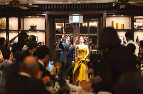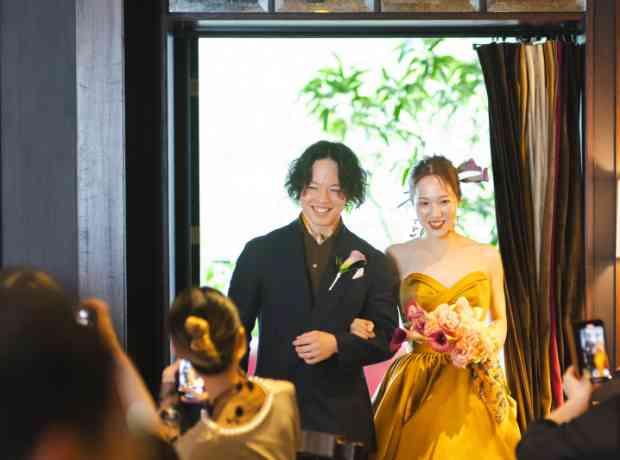 おふたりの大好きな人たちが集まる特別な日、貴重な時間だからこそゲストおひとりおひとりとゆっくり会話することを大切にされました。“パーティーのさいごは楽しく明るく締めくくりたい”そんなおふたりの想いを叶えるため、ワンモアチアーズでご退場。「Cheers」には乾杯という意味のほかに、“ありがとう”という想いも込められています。おふたりからゲストへの“ありがとう”ゲストからおふたりへの“おめでとう”。