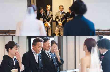 おふたりの挙式は、スイッチングレターからはじまります。おふたりがご入場される前に、ゲストの皆様にはおふたりからのお手紙を同じタイミングで一斉に開封して読んでいただきました。 感謝の気持ちをおひとりおひとりにしっかりと届けるための大切な時間。静かなチャペルをあたたかい空気が包み込む中、おふたりがご入場。 一つ一つの大切なシーンをご家族、ゲストの皆様が優しく見守ります。
