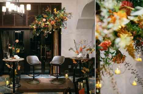 テーマは“キャンドルウェディング”。ナイトパーティーに映えるようにダリアやアンスリウム、紅葉ユキヤナギ、ストレリチアなどお花のシルエットに特徴のあるものを合わせて仕上げました。キャンドルのキラキラした非日常感を大切にしたナイトウェディングならではのコーディネート。おふたりの世界観を表現できるウェルカムスペースはご結婚式の幸せの余韻を感じてもらえるひとつに。