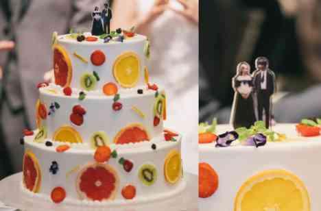 カラフルなお花や花器に囲まれた空間が好きなおふたり。会場全体は秋らしいビビッド&ダルトーンの旬のお花をベースに。ススキや枯枝などのエッセンスを合わせた「秋のカラフル」がコンセプト。ウェディングケーキの上にはおふたりをかたどったアクリルスタンドを。カラフルで華やかなケーキは 会場の雰囲気にもぴったり。おふたりらしさが溢れるとても可愛らしいケーキです。