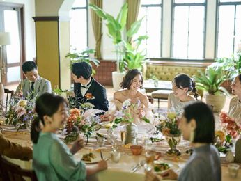 完全バリアフリーの館内は車椅子やベビーカーご利用のゲストも安心してお越しいただけます。さらにフロアを貸し切って使用できるので、テーブルレイアウトやコーディネートも自由自在でおふたりらしいパーティーが実現できます。