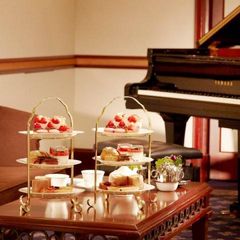 ウエディングフェア専用のスイーツ2段プレートをご用意。SNSで美しいと話題のウエディングケーキも手掛けるペストリーチームが監修するスイーツを数種類のドリンクと一緒に味わって。