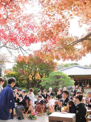 | 挙式スタイル | チャペル内教会式 チャペル内人前式 神前式 日本庭園内神前式 日本庭園内人前式 日本庭園内キリスト教式 ガーデン挙式 |