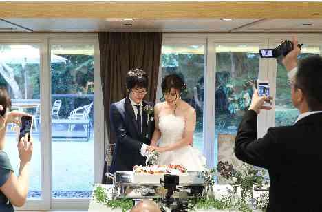 日本庭園では、フラワーシャワーや写真タイムなど ゆったりした時間を過ごしました。 新婦様もスマホを持って、自ら撮影!楽しそう~♪ 貸切のFURIANだからこそできるゆったりとした空間でした。披露宴終盤では、登場していたケーキを新郎新婦様自身で配られるなど、最後の最後まで皆様とふれあったおふたりでした。