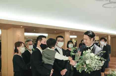 披露宴は演出を詰め込むのではなく、ゲストの皆様とお話しする時間をたくさん作った披露宴となりました。 集まって頂いたゲストの皆様と懐かしい昔話や、生まれてくる赤ちゃんの話。久しぶりに会えたご親族様達と披露宴だけでは話しきれないお話を楽しまれました。 ゲストの皆様もお二人との会話を心から楽しんでおられるご様子でした。