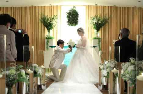 笑顔が素敵なおふたりが選ばれたのは、アットホームな【人前式】 自由に進行を考えられるからこそ、ゲストのみなさんに手伝ってもらいながら、挙式を迎えました。 新郎様が入場の際にゲストひとりひとりからお花を受け取り、ブーケを完成させる【ブーケセレモニー】 深々とお礼をしながらお花を受け取る新郎様でした。