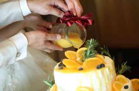 ご会食は、ゲストみんなで楽しく、お食事とお話を(^^♪ 日頃、会えないからこそこのお祝いの席で近況報告をして、とても和やかな雰囲気ですすました。 そんな中、ひとつイベントとして行ったのが【ケーキ入刀】 今回は、ナイフを入刀するのではなく、おいしそうなソースをかけて、おいしそうなケーキを完成させました。