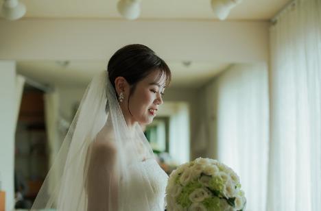 とてもリラックスした状態で準備を進めていた新郎新婦様。 はじめ、新婦様は「ショートヘアでも大丈夫かな」とヘアスタイルに悩んでいらっしゃいました。 しかし、事前に行うヘアメイクリハーサルや美容スタッフの経験の豊富さに安心して下さった新婦様。 当日は、何一つ心配事がなく、迎えて頂きました。 とっても素敵です♪