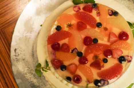 挙式のあとは、待ちに待ったお食事の時間 FURIANのおいしいお料理がみなさんをお待ちかね! そんな中、ウエディングケーキが登場! なんとケーキの上には、フルーツゼリーがのっています。 FURIANは、パティシエが常駐しているからこそ、一組一組にあったウエディングケーキをお作りすることができます♪