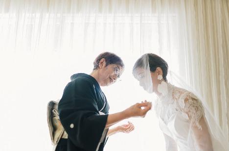 おふたりの1日は、ブライズルームからスタート。【ベールダウン】をあえて挙式中にはせず、ふたりだけの空間であるブライズルームで行いました。 一般的にイメージとして強いのが、挙式の入場の際に行うことが多いはず。しかし、あえてふたりだけの空間であるブライズルームで行うことにした新婦様。 ふたりだけだからこそ、お互いに言えなかった感謝の気持ちを伝えられました。