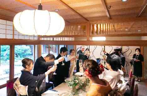 少人数でのご会食の会場として和室を選ばれたおふたり。 ゲストの皆さまとのアットホームな食事会を用意されました。 披露宴のような目立った演出ではなくご家族と会話できる時間を多く用意され久しぶりに会うご親族の皆さまもとても嬉しそうにお話を楽しまれました。 小さいころのおふたりのお話やおふたりがこれまで見てきたものについて時間を忘れて有意義なひと時を過ごされました。