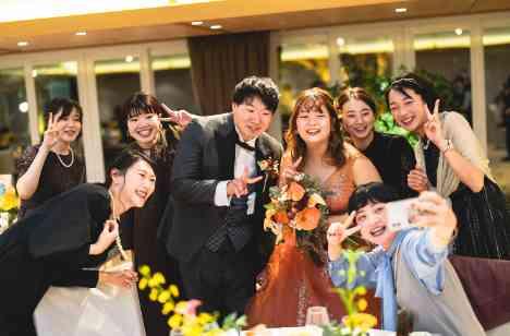 挙式のあとは、紅葉が綺麗に色づく洋風ガーデンでアフターセレモニー。 披露宴は、和やかな雰囲気で。お食事もしながら、大切な人たちとの写真撮影も楽しみました(^^♪ 披露宴の途中では、ケーキの演出も行い、大盛り上がり! お色直しは素敵なテラコッタ色のドレス。ライトアップが綺麗な洋風のガーデンから登場! そのあとは、ゲームをして楽しみました。