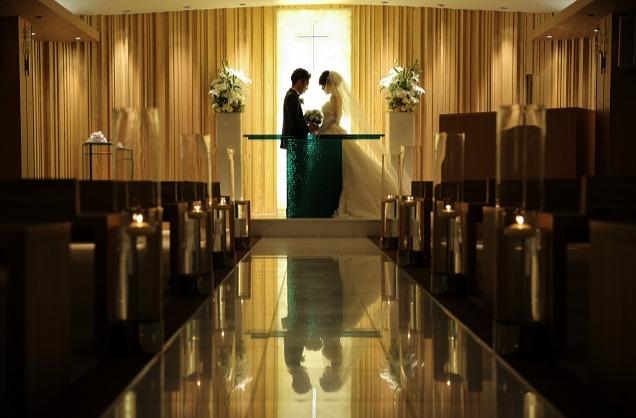 新婦お母様のベールダウンや、お父様エスコートのご入場。その雰囲気に合わせた讃美歌がチャペル内に良い緊張感を生みます。メリハリを付けたい方にオススメのスタイルかも!