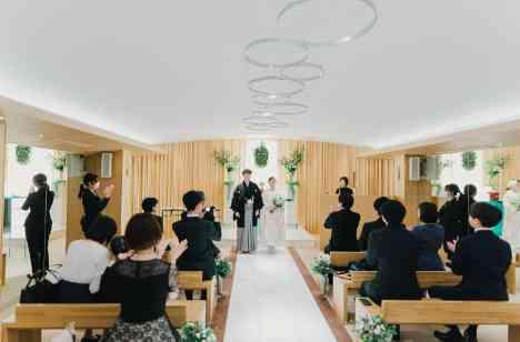 挙式は、館内のチャペルにて【和装人前式】 チャペルと和装。2つのワードだけを聞くと雰囲気が合うのかと心配される方も多いですが、FURIANのチャペルは木目調のチャペルで和と洋、どちらの雰囲気にも合うように設計されています。 新郎新婦様も飾る装飾などを工夫し、雰囲気はばっちり! 家族だけだからこそ、ゲストの顔をひとりひとり見ながら挙式をすすめました。