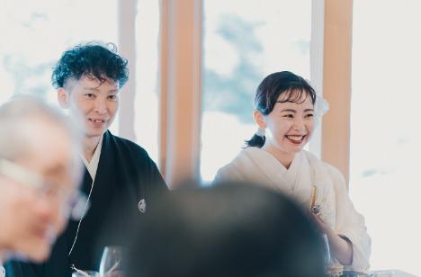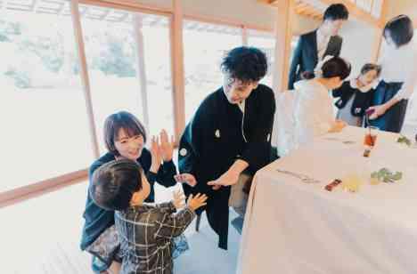 挙式のあとは、日本庭園で写真撮影タイム!ひとりひとりと写真を撮ることもわすれず、たっぷり時間を設けたおふたりでした! そして、みなさんお待ちかねのお食事タイム(^^♪ 家族だけだからこそ、気兼ねなく、新郎新婦様もお食事を楽しみました! 20名様以下をご希望の方には、和室でのお食事会もご提案しております。距離感が近いからこそ、当日の想い出がしっかりと印象に残ります。