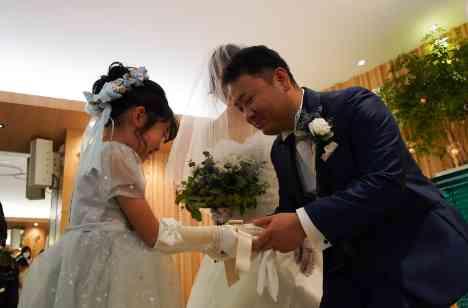もちろん、当日は見事再現成功! そんな素敵なチャペルで挙式を行ったおふたり。 まずは、新婦お父様と一緒にご登場。新婦お母様によるベールダウン。 姪っ子さんには、リングガールをお願いし、キリスト教スタイルではありましたが、ゲストの方々にご協力頂き、完成したおふたりの挙式でした(^^♪ 挙式のあとは、冬でも緑がしっかりとあるガーデンにて ガーデンセレモニーを行いました。