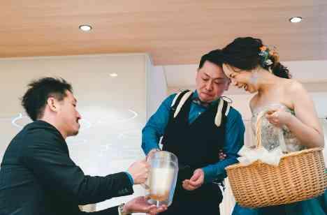 まずは、チャペルで写真撮影◎ しっかりとまじめな写真も撮ってます! もちろんそんなおふたりの挙式は【人前式】 ゲストひとりひとりに感謝しながらすすめました! そして、色んな方にお手伝いしてもらいながら…。 感動ですすんだ挙式。しかし、このおふたり。 Liveはもちろん好きですが、お笑いも大好き! 皆さんを笑わせようと【クロージングキス】ならぬ【クロージングゴイゴイス】
