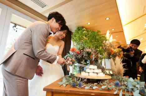 そのあとはそのまま【洋風のガーデン】でアフターセレモニー ブーケトスや写真撮影などを楽しみました! 披露宴はとにかく楽しく! 新郎新婦とゲストがとっても近くで写真撮ったり、お酒を飲んだり、本当に楽しそう! 披露宴の後半では、素敵な姿にお色直しした新郎新婦と一緒にデザートブッフェを楽しみました。