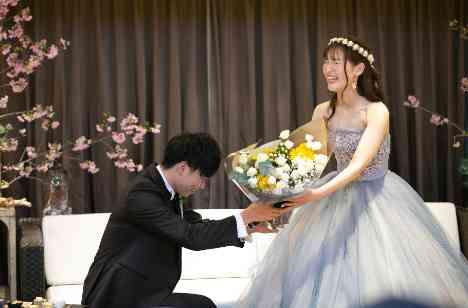 ご披露宴終盤では 一番側で支えてくれている大切なご新婦様へ❀ 「いつもありがとう、これからもよろしくね」 そんな意味を込めてお花束をサプライズプレゼント! 思いがけないお花束にご新婦様も思わず満面の笑顔が(^^♪ 最後までおもてなし・思いやりに溢れた一日で ゲストの方にもたっぷり楽しんでいただけました!
