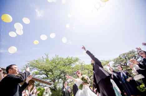 大空の下、祝福のガーデン挙式。