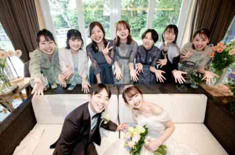 披露宴ではゲスト全員と少しでも長く一緒にいれる、 一緒に楽しめる披露宴にしたいとお話しをしていたお二人。 全員のゲストと笑顔いっぱいのお写真タイム♪ そして、お色直しはガーデンからの入場! 新婦様のドレスを見て「かわいい」「似合う」全員からの言葉にとても幸せそうな新婦様でした。 お色直しをした新郎新婦様。 さらに盛り上がったフリータイム、写真撮影でした!(^^)/