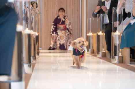 お二人の挙式はゲストの皆様を承認とする「人前式」挙式中には『カワイイ!』大歓声♪お二人の結婚式への想いの一つとして家族の中で一番小さいワンちゃんにリングドックをしてほしい。そのお二人の希望を叶えたワンちゃんも参加の結婚式!とてもかわいかったです(^^)/ しっかりとお二人の元へ、寄り道をせず指輪を届けたワンちゃんに拍手でした(^^♪
