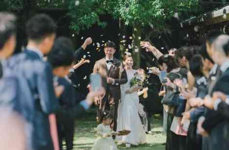 そして結婚式もアットホームにしたいということからガーデン挙式を取り行われました。 緑に包まれ、カジュアルに列席していただけるガーデン挙式は列席するゲストにも大好評でした! リングガールもとても可愛く新郎新婦はもちろん、ゲスト全員を癒していましたね(^^♪ 皆様からの祝福のフラワーシャワーもとても幸せそうでした!