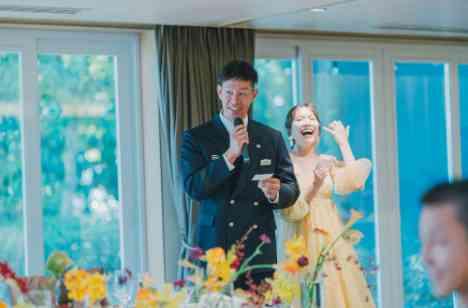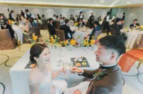 披露宴のコーディネートは、新婦様がオレンジ色が好きなことから秋を連想できる色合いお花をフラワーコーディネーターと打ち合わせし決められました! ウェルカムスピーチから、乾杯の挨拶と乾杯の発生ではお料理も楽しみにしていた皆様はとても楽しんでおられました。 再入場では新婦様は大好きなオレンジのドレスに新郎様はなんと! 消防士の制服でご入場! ドレスもとても綺麗で制服もかっこよかったです(^^♪