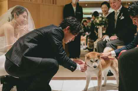結婚式は、順調に進み、挙式の時間になりました。 おふたりが選ばれたのは、【人前式】 周りの方を大切にされるおふたりにぴったりな挙式スタイルとなりました。 そんなおふたりの挙式には、もうひとり大切な相棒をつれてきました。 新郎様のご実家で飼われている【愛犬】 とってもお利口さんで大切な役目【リングドック】を無事つとめあげました!