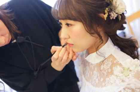 当日のメイクをしている時のお写真です。 これから始まる式を目の前に、緊張の時間です。。。 新婦様の表情からも、緊張されている様子が伺えます。 その反面、楽しみもいっぱい!これから始まる自分たちの一日に、胸が高鳴る時間ですね! 綺麗なドレスを着て、鮮やかな色合いのフラワーを髪に飾り、新婦様が最も綺麗になる瞬間です。