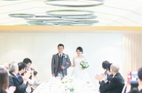 お二人は披露宴会場のレイアウトを会食会場のようにし、机を向き合わせるような形にされました。 皆様とのご歓談、皆様へのおもてなしを非常に重視して考えていらっしゃるお二人でした。 このあととても楽しい披露宴が始まります♡