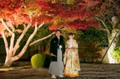 紅葉の美しい時期にご結婚式を挙げられたお二人。お色直しには、優しいお色の【色打掛】をお選びになられました*秋を感じさせる色合いで、日本庭園の紅葉とも相性抜群。素敵なお二人へ会場内からは拍手と歓声が沸き上がりました。