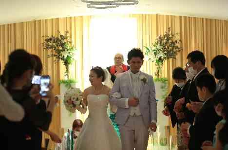 キリスト教式を選ばれたお二人は、ご家族やご友人に見守られながら、厳粛ながらも温かいお時間を過ごされました。お二人の新たな門出に、ご家族やご友人も感動に包まれました。退場時はご列席の皆様に温かい言葉と拍手に包まれながら皆様の『おめでとう』という思いのこもったフラワーシャワーを浴びながら退場されました。