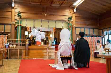 神前で新郎が自ら誓いの言葉を読み上げるシーンがあり、結びに夫●●、妻●●と、自分の名前をそれぞれ読み上げたときには改めて夫婦になれた喜びと重みをしっかり感じる事が出来ました。 夫婦として頑張っていく決意が両親にも伝わっていたはずです。 境内での写真撮影では、沢山の人にお祝いしてもらいながらとても楽しく過ごすことが出来ました。